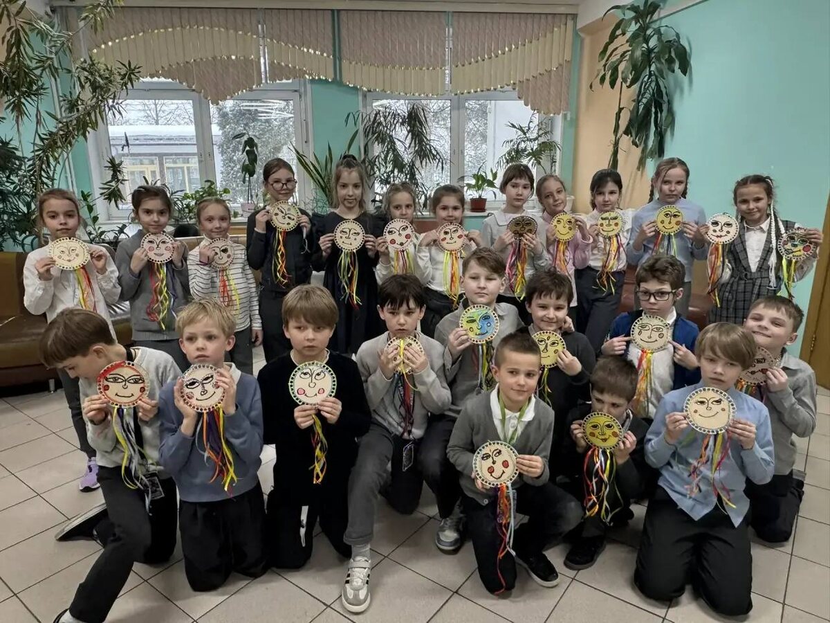 🌞 В классе у Марии Викторовны Вайсенберг накануне праздника было особенно оживлённо. Команда 2 «Б» готовилась к Масленице не по учебнику, а по-настоящему — с красками, лентами и блеском в глазах. На мастер-классе каждый создавал своё солнце — яркое, тёплое, будто уже зовёт весну в гости. 🎨 Деревянные круги быстро превратились в сияющие обереги. По краям расцвели разноцветные ленты — лучи получались длинными, озорными, совсем как настроение в тот день. А когда в центре заискрились стразы, работы словно ожили. Ни одного одинакового солнца — у каждого своё настроение и характер. 🏛 А уже 18 февраля 2026 года ребята отправились в усадьбу Середниково. Старый парк, белоснежные аллеи и история, к которой можно прикоснуться. Экскурсия открыла страницы прошлого, а рассказы о Михаиле Юрьевиче Лермонтове прозвучали особенно живо — будто поэт только что вышел на крыльцо. 🎭 И вдруг — весёлый перезвон, смех, зазывные голоса скоморохов. Усадьба превратилась в большую масленичную площадь. Перетя