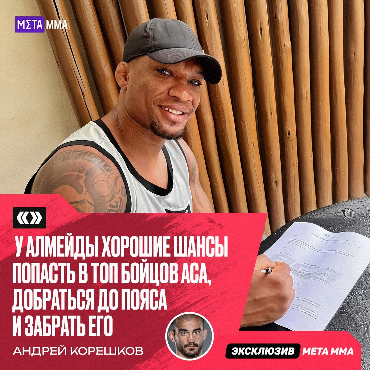 Бывший чемпион Bellator Андрей Корешков высказался о переходе Жаилтона Алмейды в лигу АСА. По мнению бойца, у бразильца есть все шансы закрепиться в топе и побороться за чемпионский пояс. «Алмейда сам виноват, что его уволили из UFC. Сейчас у лиги такая тенденция, что они стараются избавляться от скучных бойцов, и он попал в этот список. Жаилтона убрали при первой же возможности. Матчмейкеры АСА – молодцы, что сразу подобрали такого именитого бойца. В дальнейшем увидим, как он себя покажет. На самом деле у него хорошие шансы попасть в топ бойцов АСА, добраться до пояса и завоевать его. У Алмейды большой опыт выступлений, он сильный соперник сам по себе. У Жаилтона неудобная стилистика для соперников. Он хорошо борется и в партере, и в стойке», — сказал Корешков в интервью MMA.Metaratings.ru. ❓ Верите, что Алмейда станет чемпионом АСА? 🔥 — Да, заберет пояс 🤔 — Сомневаюсь 👊 Подпишись на Meta MMA | Meta MMA в MAX | Наш канал в ВК