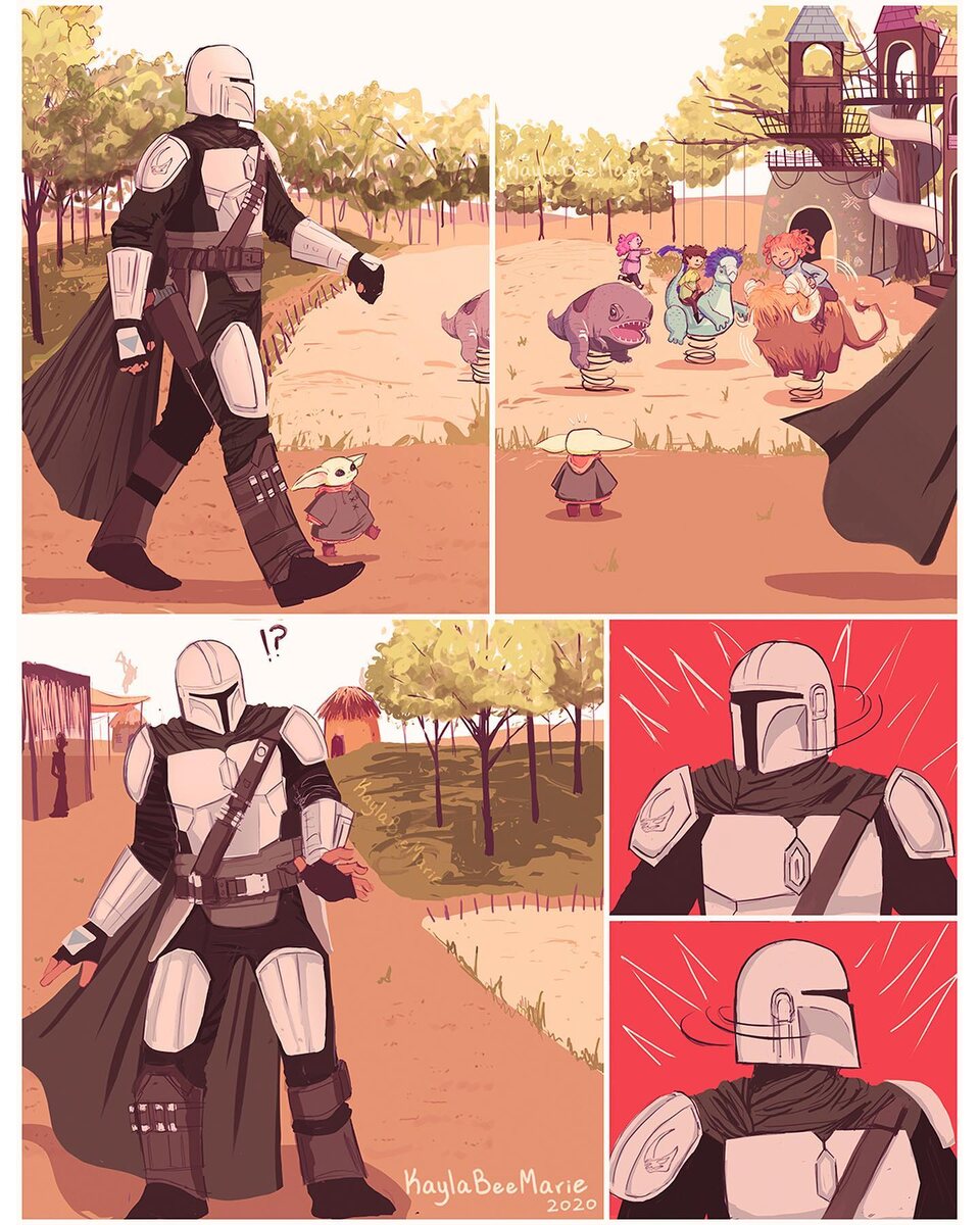 Я официально все проспала. Я так сильно ждала продолжение сериала "Мандалорец", что забыла о нем. Хех. На самом деле, я действительно пропустила выход еще двух сезонов, потому что ушла в какие-то дела, работу, самобичевание. Сейчас я просто смотрю на эти комиксы и у меня лапки чешутся, как сильно мне хочется поскорее включить следующие сезоны, но сегодня я работаю. И завтра работаю... и еще много много дней работаю. Однако, сериал я досмотрю в любом случае. А вас вот, порадую комиксами и этой милейшей милотой. Автор комиксов: kayla.bee.marie