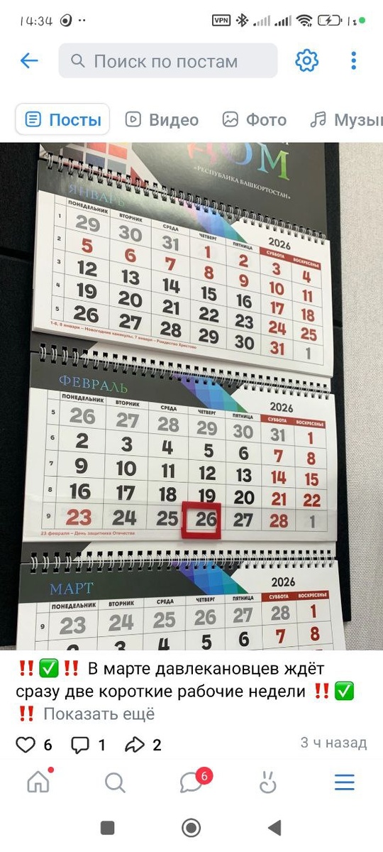 💯В этом году март богат на удлинённые выходные, ведь жители Башкирии отметят сразу два больших праздника. 💐 Международный женский день в этом году выпадает на воскресенье, 8 марта, потому выходной переносится на понедельник, 9 марта. 🙏А в пятницу, 20 марта, мусульмане встретят праздник Ураза-байрам. ✅В связи с этим, выходными днями в республике будут 7, 8 и 9 марта, а также 20, 21 и 22 марта. Так что давлекановцев, работающих по стандартной пятидневке, ждут сразу две сокращённые рабочие недели. Причём в четверг, 19 марта, рабочий день будет сокращён на один час.