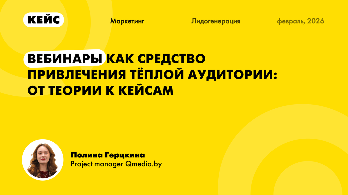 В Qmedia часто обращаются с запросами на запуск рекламных кампаний для привлечения пользователей на вебинары или офлайн-мероприятия. Полина Герцкина поделилась двумя кейсами, где вебинар использовался как инструмент привлечения тёплой аудитории и «встраивался» в общую воронку на этап интереса.