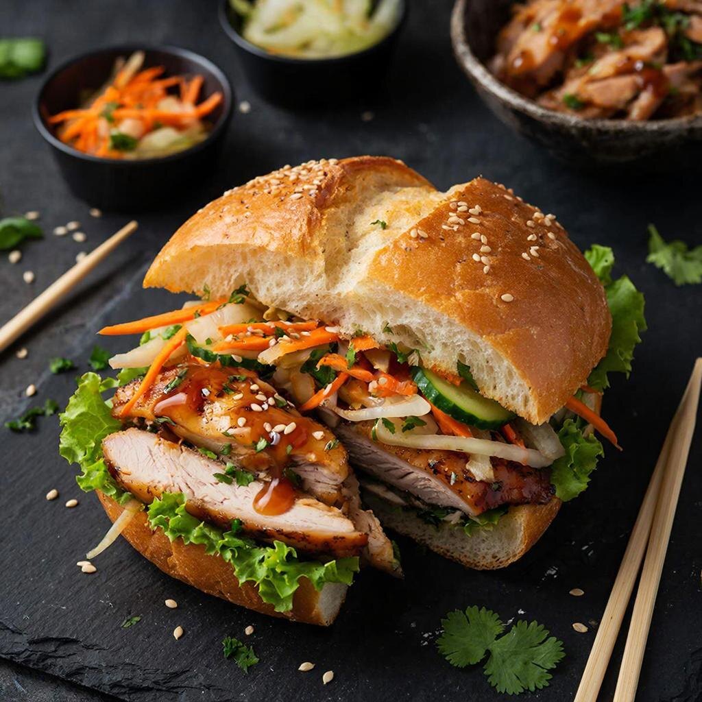Корейская кухня славится своими яркими, ферментированными вкусами и умением балансировать между противоположностями. В этом сэндвиче: