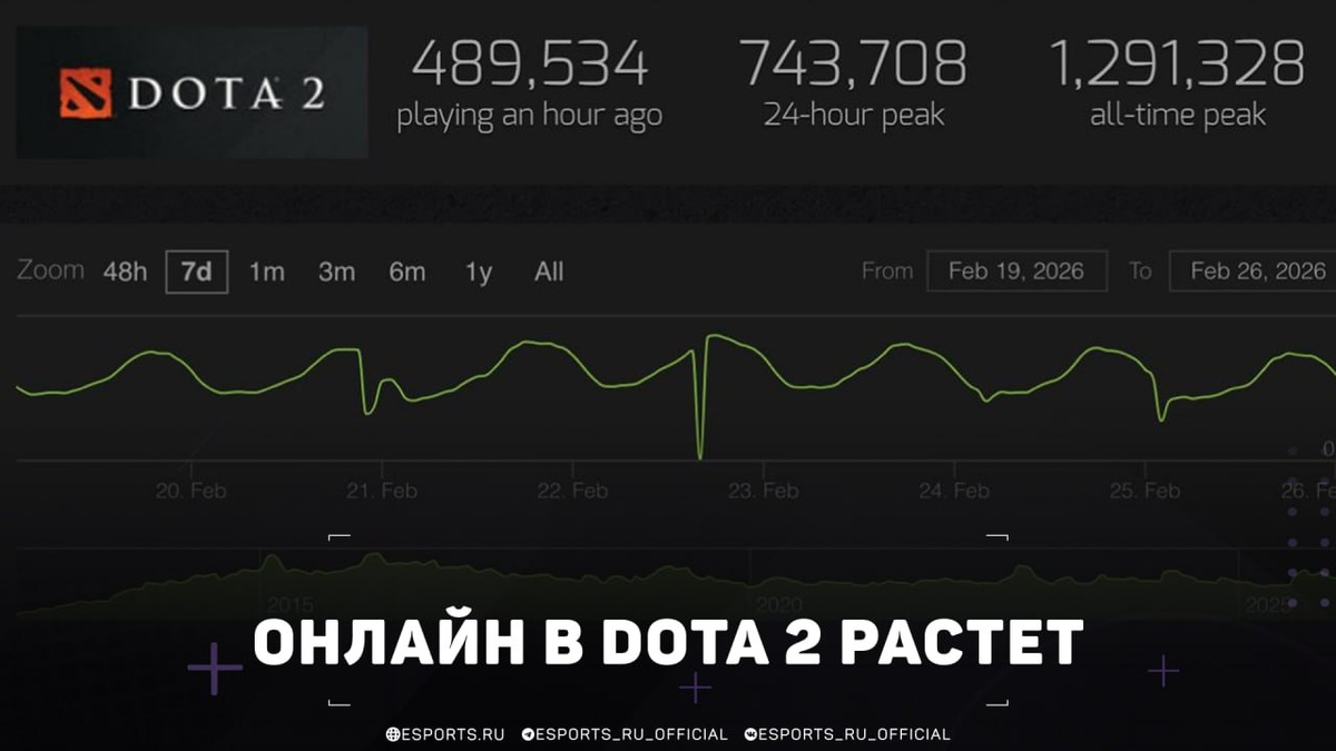 π ΠΠ½Π»Π°ΠΉΠ½ Dota 2 Π² ΡΠ΅Π²ΡΠ°Π»Π΅ ΡΠ½ΠΎΠ²Π° ΠΏΡΠΈΠ±Π»ΠΈΠ·ΠΈΠ»ΡΡ ΠΊ ΠΎΡΠΌΠ΅ΡΠΊΠ΅ Π² 600 000 ΠΈΠ³ΡΠΎΠΊΠΎΠ² β ΠΈ ΡΡΠΎ Π±Π΅Π· ΠΊΡΡΠΏΠ½ΡΡ ΠΎΠ±Π½ΠΎΠ²Π»Π΅Π½ΠΈΠΉ