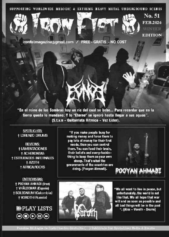 Дали большое интервью известному журналу Iron fist в Колумбии (Богота). Сейчас работа с зарубежной аудиторией идет не так продуктивно как раньше, но стараемся двигаться! А Вы еще читаете бумажные издания? )