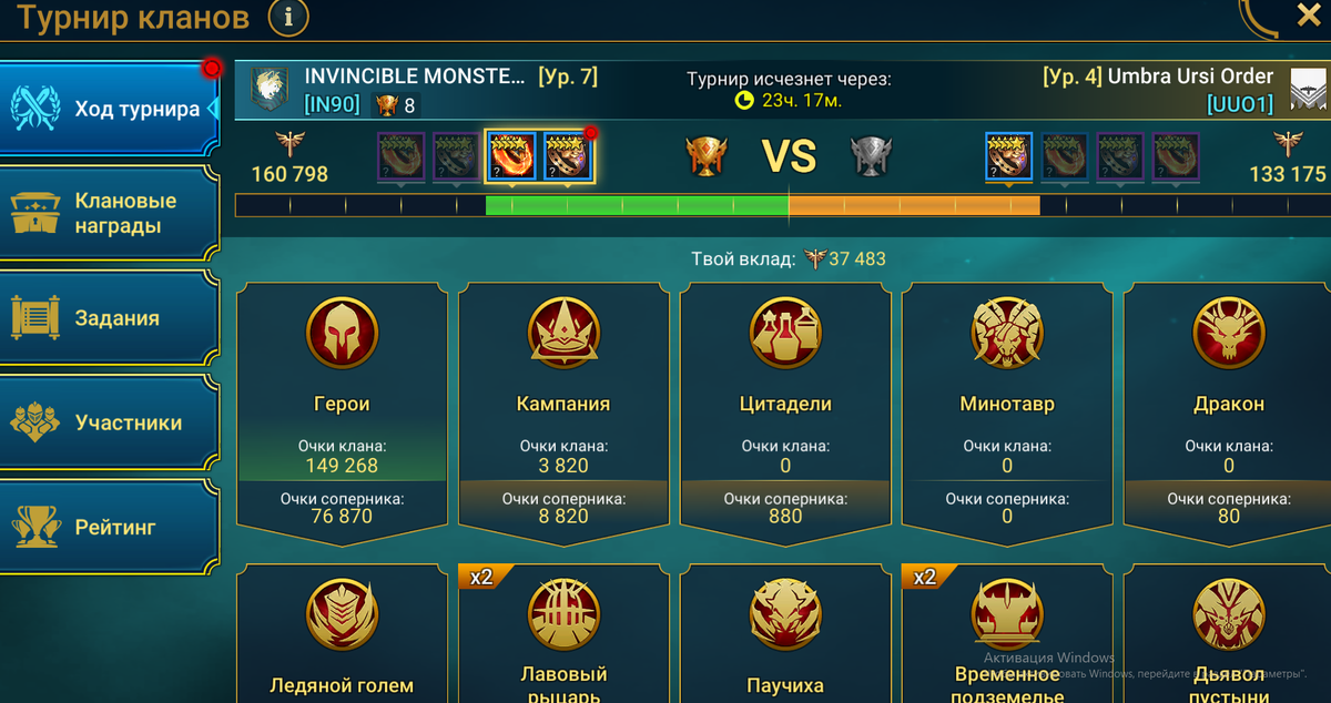 Raid Shadow Legends. Турнир Кланов завершен!!! Мы победили. С трудом, но победили соперника. Большое всем спасибо, кто принял участие и принес очки клану. Я мог бы и больше, но сорри, вирус сковал меня очень сильно, поэтому толком за ком и не присел даже. Еще раз всем спасибо!!!