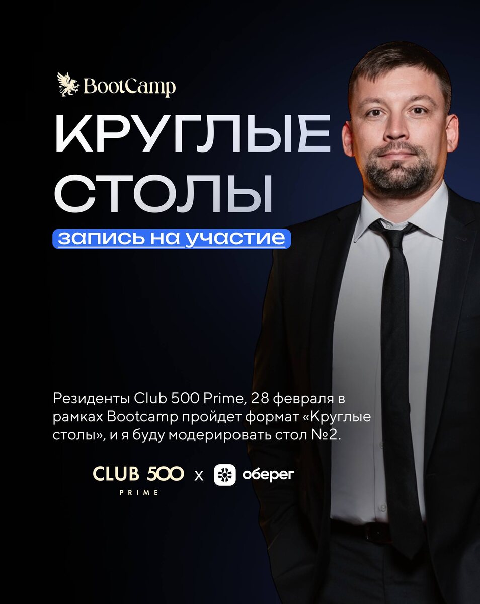 Резиденты Club 500 Prime, 28 февраля в рамках Bootcamp пройдет формат «Круглые столы», и я буду модерировать стол №2