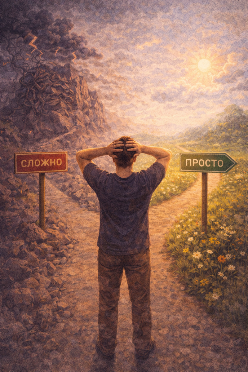 Парадокс человеческого поведения заключается в том, что при наличии очевидного и доступного решения мы нередко выбираем более трудный путь. Вместо короткого разговора — долгие размышления. Вместо отдыха — изматывающую переработку. Вместо прямого «нет» — сложную систему оправданий. Такое поведение редко связано с объективной необходимостью. Чаще оно отражает устойчивые психологические механизмы, в которых простота воспринимается как риск, а сложность — как безопасность. В концепции Алексей Ухтомский доминанта описывается как устойчивый очаг возбуждения, определяющий направление психической активности. Если в течение жизни человек привык достигать результата через преодоление, формируется доминанта усилия. Мозг связывает ценность с трудностью. Простое решение воспринимается как недостаточно надёжное или «незаслуженное». В этом случае сложность становится не объективной необходимостью, а внутренним условием ощущения контроля и значимости. С точки зрения Лев Выготский, поведение определяет