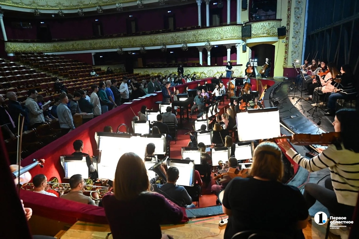 В Челябинском театре оперы и балета проходят последние репетиции концерта, посвященного 120‑летию Дмитрия Шостаковича. Программу представят в субботу, 28 февраля, а пока певцы и музыканты доводят все нюансы до совершенства. Корреспондент ИА «Первое областное» понаблюдал за работой артистов. Хор — на зрительских местах, музыканты — в оркестровой яме. Это пока, на репетиции, певцы сидят в зале, ведь прямо в этот момент за железным занавесом монтируют декорации для сегодняшней оперы «Аида». А уже в субботу все артисты поднимутся на сцену, чтобы представить совершенно новую для Челябинска программу. Выступление приурочили к 120‑летию советского композитора Дмитрия Шостаковича. Его частью стали концерт для фортепиано, трубы и струнного оркестра, поэма «Казнь Степана Разина» и сцена «Под Кромами» из оперы «Борис Годунов». Последнее произведение принадлежит Мусоргскому, но редактировал его Шостакович. «Я думаю, что зрителям будет очень интересно в первый раз соприкоснуться с „Казнью Степана Р