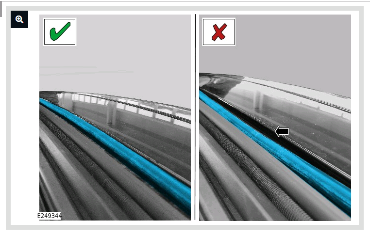 Данный бюллетень обновлен в связи с изменениями в диапазоне автомобилей, подверженных неисправности. Крепление уплотнения открывающейся панели крыши. Откройте открывающуюся панель крыши. Осмотрите основное уплотнение открывающейся панели крыши. Очистите основное уплотнение открывающейся панели крыши и прилегающую область. Расположите компрессионное уплотнение открывающейся панели крыши с одной стороны. Расположите неправильно установленное основное уплотнение открывающейся панели крыши с одной стороны, чтобы получить доступ к направляющей уплотнения. Нанесите клей для стекол на направляющую основного уплотнения открывающейся панели крыши.
