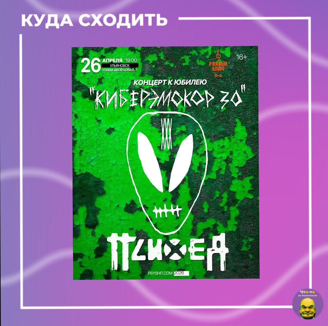 🔥 Психея с радостью представляет вторую — весеннюю часть масштабного турне по России! Везёт с собой в турне всё самое лучшее и интересное из своего наследия: «Каждую секунду пространства», «Герой Поколения Бархат», «Видения», «ПесниТрущобНадеждыРазбитыхСердец», «Шлюха» и «ССОК», Сид Спирс и Бесконечный Стук Шагов, WWW и Навсегда! 📅Когда: 26 апреля в 19:00 📍Где: в баре "Ржавый Ключ" (ул. Дворцовая 7) #куда_пойти_ул