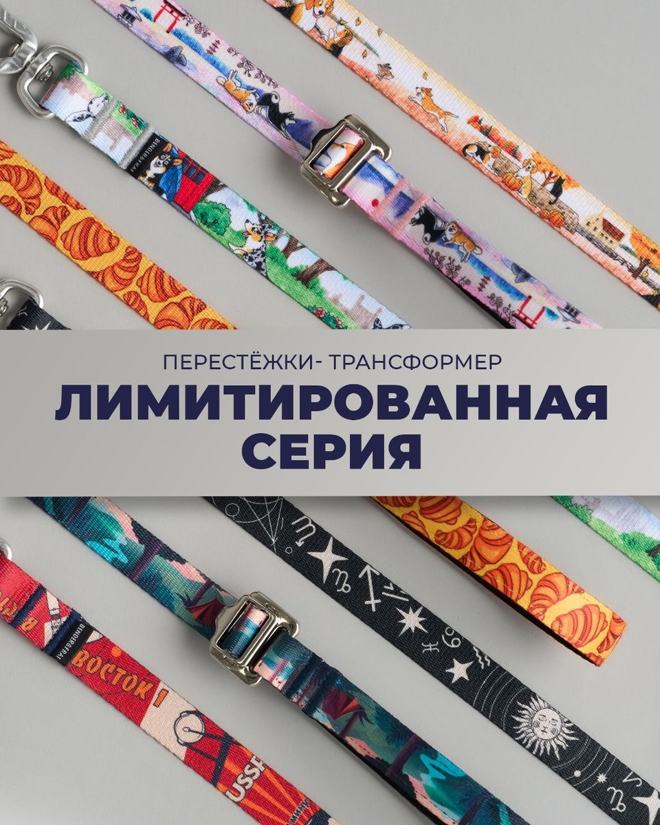 К семи мегапопулярным принтам – перестёжки в комплект уже в продаже! 🌞 Астрология 🍁 Бигли New 👑 Корги New 🥐 Курасан 🌲 Лес 🌸 Сибы New 🚀 Поехали! ❗️Тираж ограничен! Успейте купить перестёжку в комплект к любимому принту, о которой мечтали Почему вам нужна перестёжка-трансформер Bender&Frai? 🔸 Используйте как короткий или длинный поводок – универсальность 🔹 Пристёгивайте собаку к себе через плечо или на пояс – свободные руки и контроль 🔸 Часть поводка, которую контролируете руками, прорезиненная – не скользит 🔹 Ручка-перехват позволит быстро взять собаку ближе – удобство в небольших пространствах 🔸 Для собак любого размера – три ширины и карабины с учётом размера собаки 🛒 Уже на сайте: https://benderfrai.ru/limit_transfers