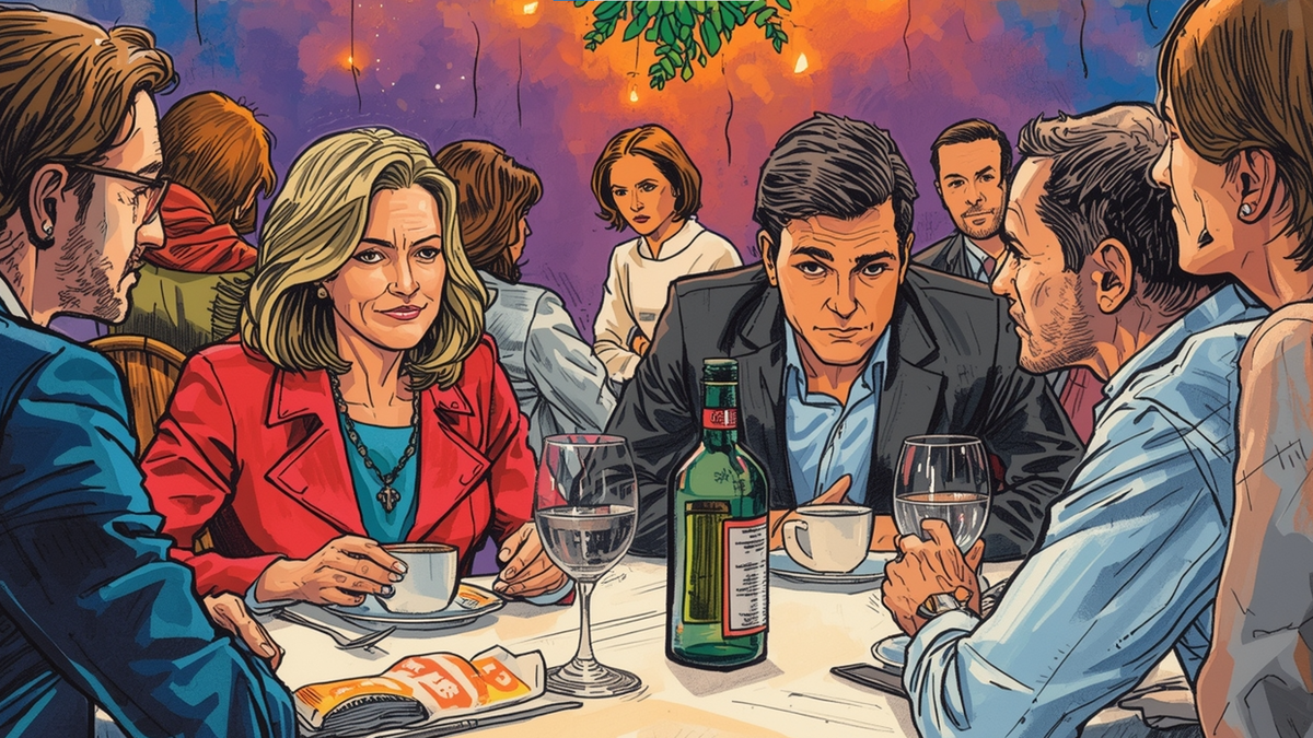 Лена поправила вилку, которая лежала ровно. Артём посмотрел в окно. За окном шёл снег.