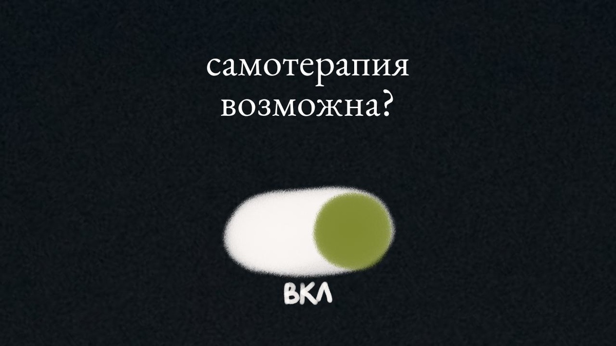 Самотерапия — не альтернатива работе с психологом, а скорее как закономерный этап, который становится возможным благодаря ей. Потому что сама по себе самотерапия невозможна, если не было целенаправленного опыта взаимодействия с другим. «Какой я в этом контакте? Как реагирую? Чего стыжусь? На что злюсь? Или наоборот хочу понравиться?»