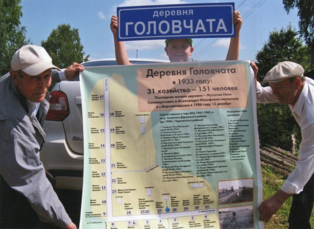 В минувшем году произошло одно знаменательное событие: 28 ноября 2025 года инициативная группа из десяти человек установила в центре бывшей деревни Головчата, располагавшейся на территории Александровского сельсовета Даровского района, памятник-стелу со схемой расположения домов, со списком погибших и раненых в годы Великой Отечественной войны её жителей.