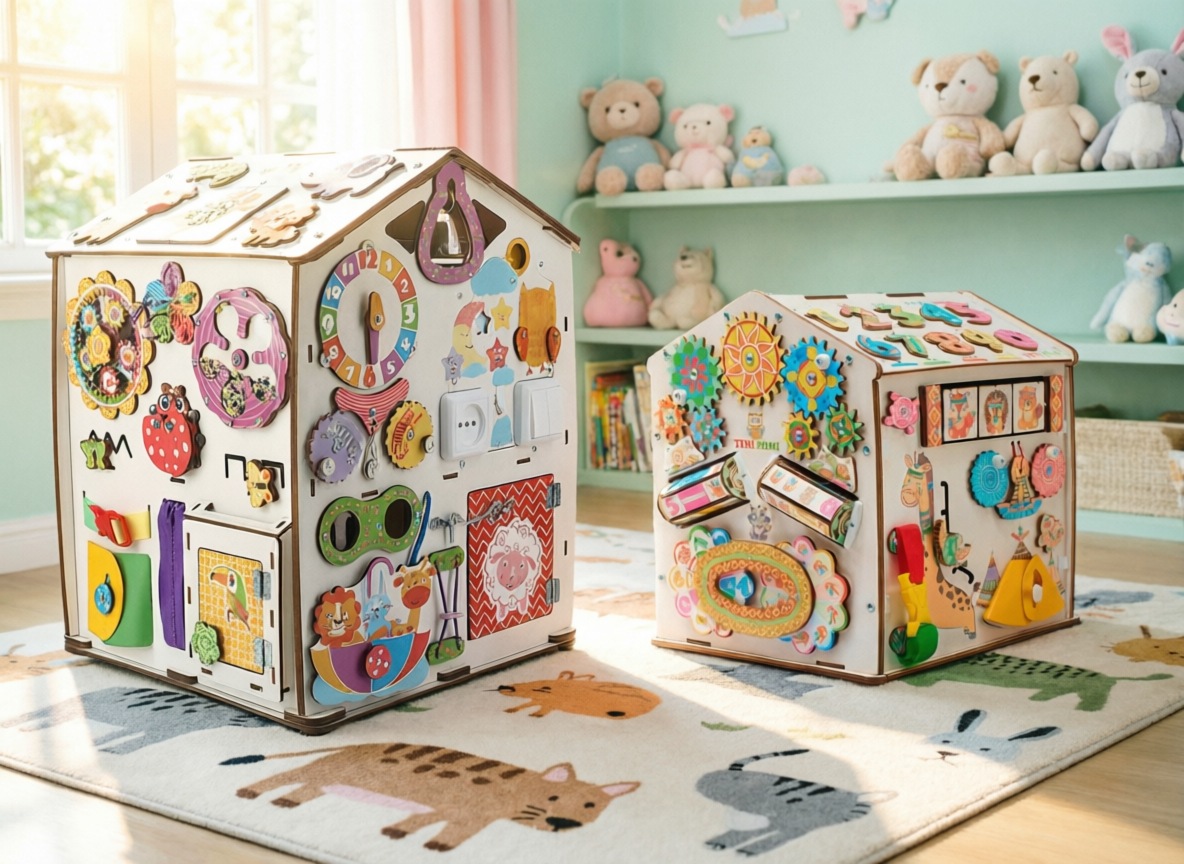 Шесть панелей, много заданий и деталей, плюс декоративные фигурки «друзей», чтобы у игры появился сюжет. Что особенно люблю в «МЕГА»: он реально работает как игровой центр. Ребёнок не просто щёлкает замочки, а возвращается к домику, придумывает «кто где живёт», учится собирать цепочки действий.