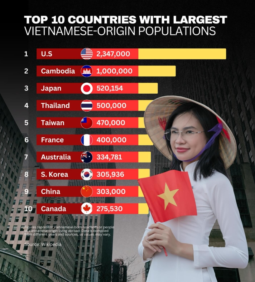 Привет, любители Таиланда! Сегодня мы погрузимся в захватывающую тему глобального присутствия вьетнамцев. Их диаспора, сформированная десятилетиями миграции, поиском лучших экономических перспектив и возможностями обучения, раскинулась по всему миру! Лидеры по числу вьетнамцев за рубежом: США : Без сомнения, Америка занимает первое место. Огромные миграционные потоки с конца 20-го века и крепкие общинные связи продолжают привлекать сюда вьетнамцев. Камбоджа : Соседка Вьетнама, Камбоджа, находится на втором месте, принимая около миллиона вьетнамцев. Географическая близость, давние исторические, культурные и экономические связи играют здесь ключевую роль. Многие вьетнамские общины существуют здесь поколениями! Япония : Третье место занимает Япония. Это отражает более новую тенденцию, связанную с активной трудовой миграцией, а также образовательными и профессиональными программами, которые привлекли сюда множество вьетнамцев за последнее десятилетие. География вьетнамцев: Помимо первой т