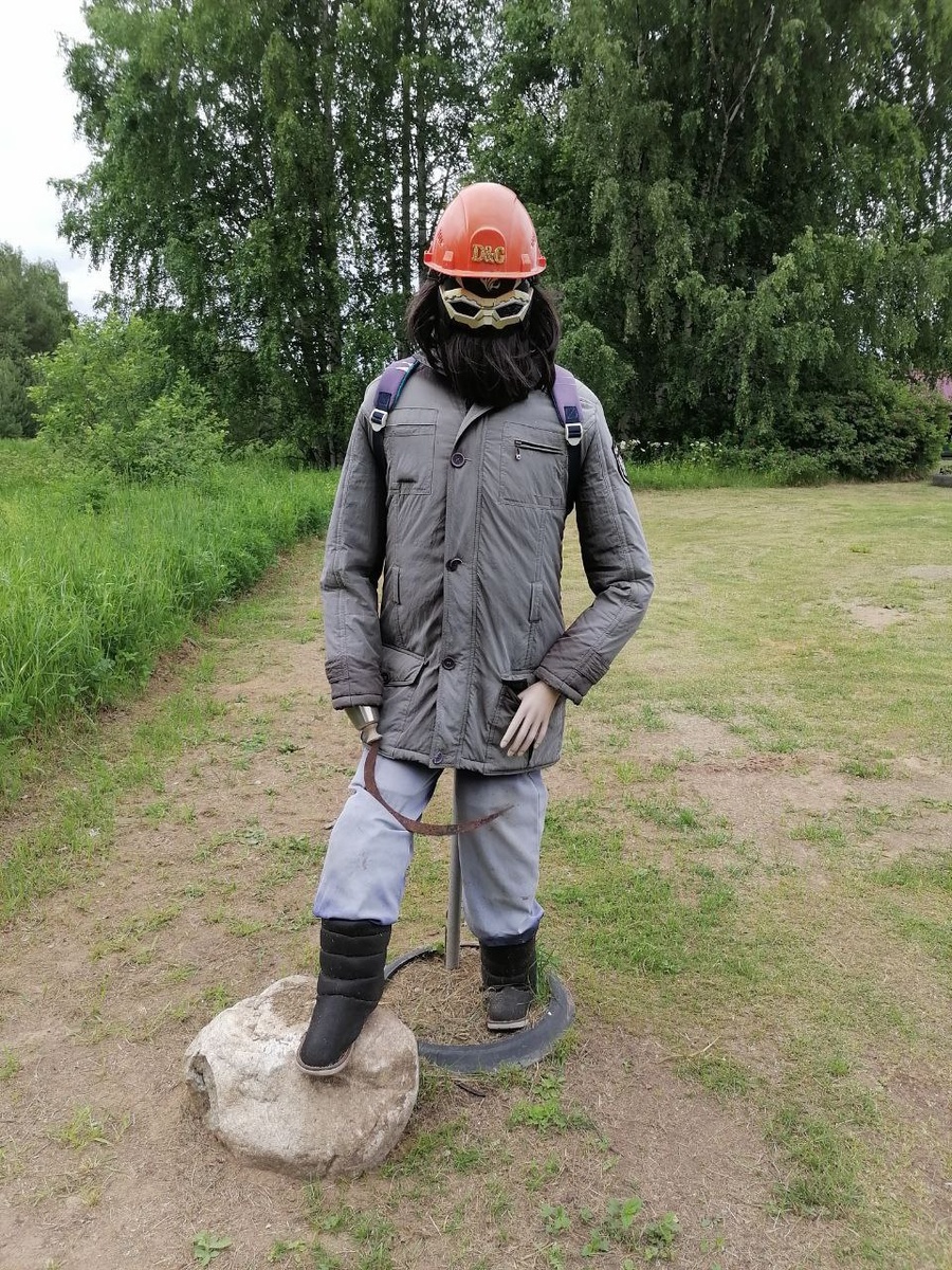 — Там кто-то стоит, — испуганно ткнула пальцем мама, увидев фигуру вдалеке. Мы как раз вывернули на прямую дорогу к дому. — Не бойся, мы охрану наняли на время, когда нас нет. Так у нас появился секьюрити Валера. Как говорится, мы его слепили из того, что было. А было следующее: · Каска строительная оранжевого цвета, 1 штука. · Бутылки пластиковые по 1,5 литра и одна пятилитровка. · Торс мужской пластиковый, купленный за 50 рублей на распродаже. · Сапоги зимние женские, аля «валенки». · Куртка мужская, вышедшая из моды. · Штаны рабочие заношенные. Затолкав полторашки в рабочие брюки, сделали Валере ноги. Да, получились немного иксообразные. Но идеальных людей не бывает, у каждого свои недостатки. На пятилитровку надели маску, каску и завязали старой косынкой рот, ибо охрана не должна много разговаривать. Вид получился достаточно грозный и немного загадочный. Набив аналогичным способом рукава, водрузили туловище на кол. И так будет с каждым непрошеным гостем, который вторгнется во владе