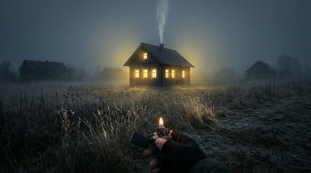 Не развалина, не призрак. Крепкий, ладный сруб из светлого, словно только что ошкуренного дерева. Из трубы шел ровный дымок, поднимаясь строго вертикально, хотя низом тянул сквозняк. В окнах горел свет — теплый, уютный, какой бывает только в детских воспоминаниях.