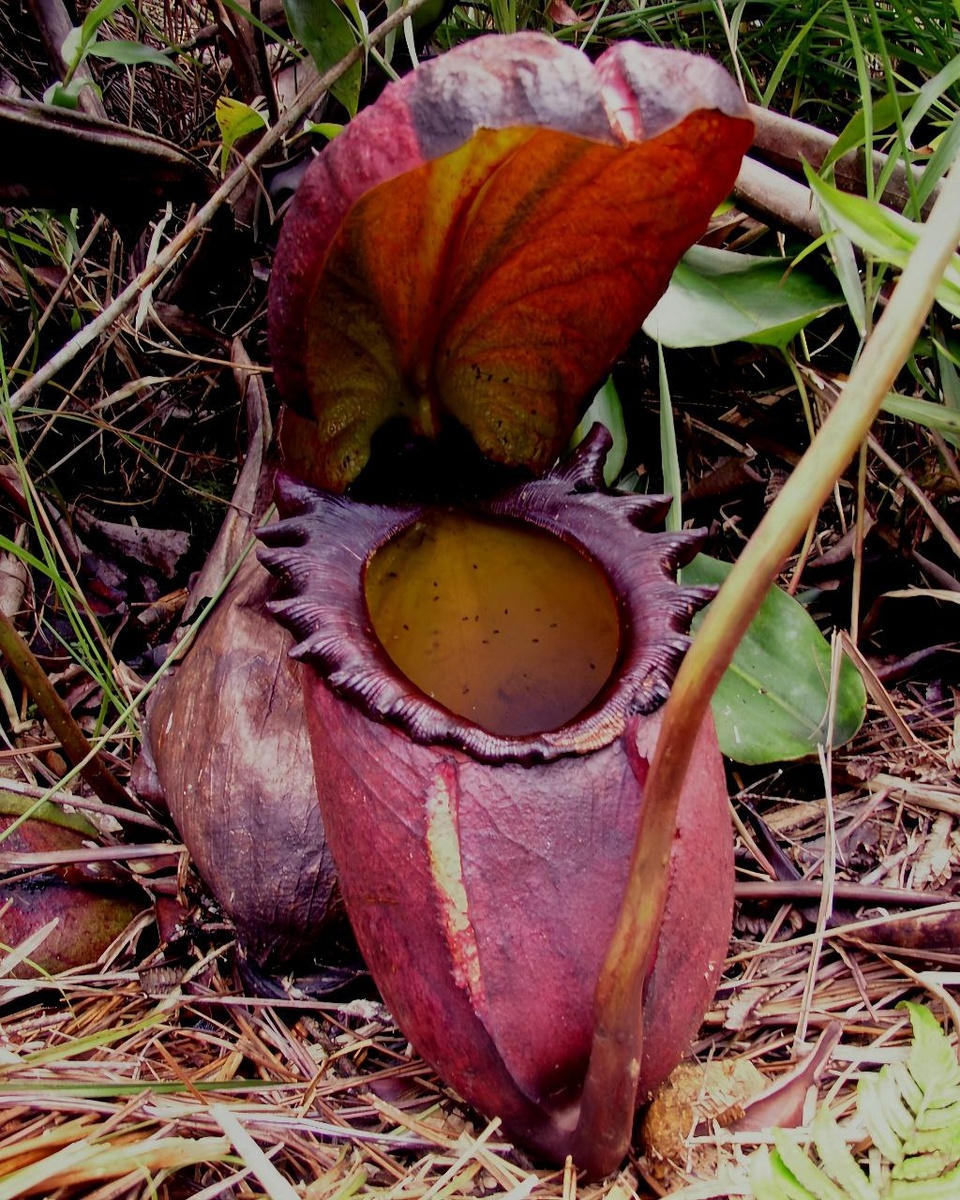 😍🪴 Самый крупный среди непентесов, один из самых редких видов плотоядных растений в мире! В природе произрастает на о. Борнео, исключительно в высокогорных районах на высотах 1500–2650 м. Предпочитает почву с высоким содержанием тяжёлых металлов, в условиях высокой влажности и умеренных температур. Характерными особенностями вида являются кувшины — крупнейшие среди всех видов непентеса. Они достигают 35-40 см в длину и 20 см в диаметре! Ловушки имеют зеленовато‑жёлтый или оливковый цвет с тёмно‑красными или пурпурными прожилками и пятнами. Внутренняя поверхность кувшина более насыщенного красного оттенка. Ребристый перистом также тёмно-красного цвета, шириной 3-5 см. Крышечка кувшина держится почти горизонтально, защищая кувшин от попадания дождевой воды. На нижней стороне — многочисленные нектарные желёзки. В молодом возрасте стебель N. Rajah может быть розеточным, а у взрослых растений — становится "лазающим" и позволяет растению обвиваться вокруг стволов деревьев на высоту