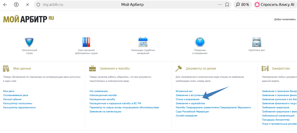 Как отправить отзыв на исковое заявление через систему кадрарбитр