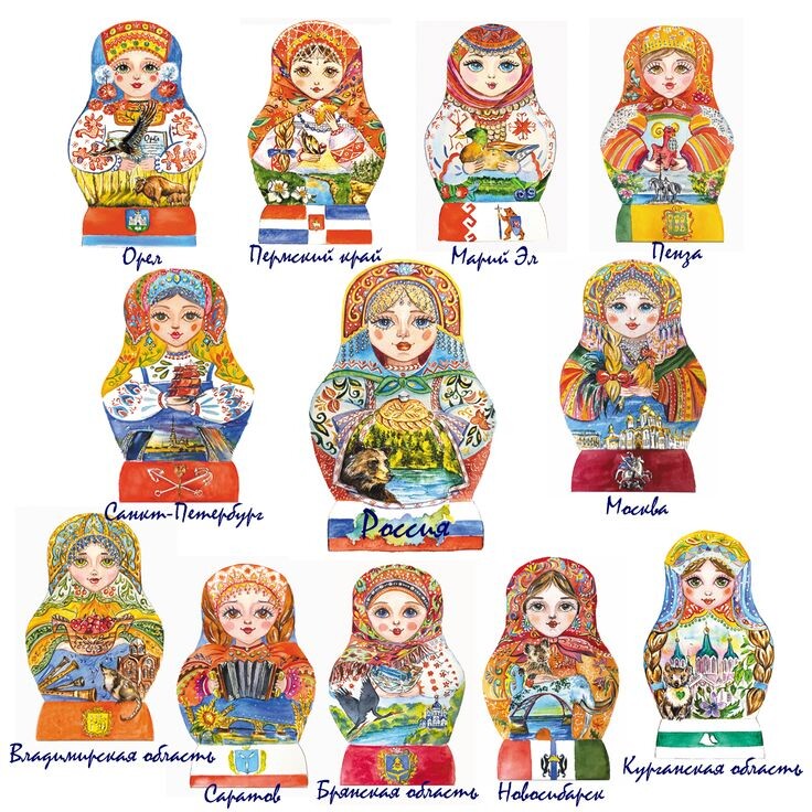 Моя Матрешечка завершена, но идей по поводу того, как украсить подобную игрушку, множество! Только посмотрите, какие великолепные образцы я нашла на Пинтерест: При наличии времени, желания и вдохновения можно создать целую серию матрешек в разных костюмах - от русских народных со стилистическим местными особенностями до куколок, воплощающих в своем образе дух разных городов! У меня глаза разбегаются, так хочется всё опробовать)))... Но пока не наберусь смелости замахнуться на подобный проект. Возможно, кого-то из моих рукодельных подруг-подписчиц эти идеи вдохновят на творчество? Если решитесь, расскажите, пожалуйста, что получается, и какие образы вы воплощаете🤗🤗🤗. А я подкину еще немного вариантов куколок в национальных костюмах. Думаю, эти идеи отлично подойдут для игрушек разных техник, хоть ватных, хоть текстильных. Главное, есть, от чего оттолкнуться! Простые, но значимые отличительные детали, своеобразные узоры, крой платья - всё это сжато, но ёмко представлено на схемах. К