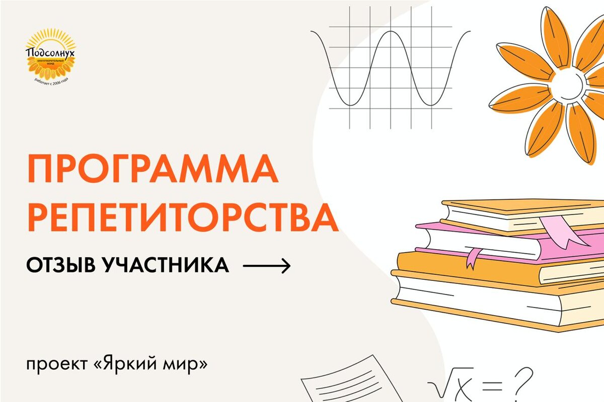 задачей. Но с правильной поддержкой всё становится реально. Юлия, мама нашего подопечного подростка, прислала слова благодарности репетитору. Их опыт доказывает: даже самые сложные темы можно понять и полюбить, если рядом чуткий наставник. Читайте на карточках отзыв целиком. Как здорово, когда учёба перестаёт быть стрессом и становится в радость! Мы очень рады за успехи дочки Юлии и благодарим Инну за профессионализм и чуткость. Напоминаем, что программа репетиторства фонда «Подсолнух» работает для всех наших подопечных. Если вашему ребёнку нужна помощь в учёбе, подготовке к экзаменам или просто поддержка, чтобы не отставать от школьной программы из-за пропусков по болезни — вы можете подать заявку. Как это сделать: Через приложение Фонда или на сайте propid.ru. С вами свяжется координатор, обсудит все детали и поможет подобрать репетитора для знакомства.