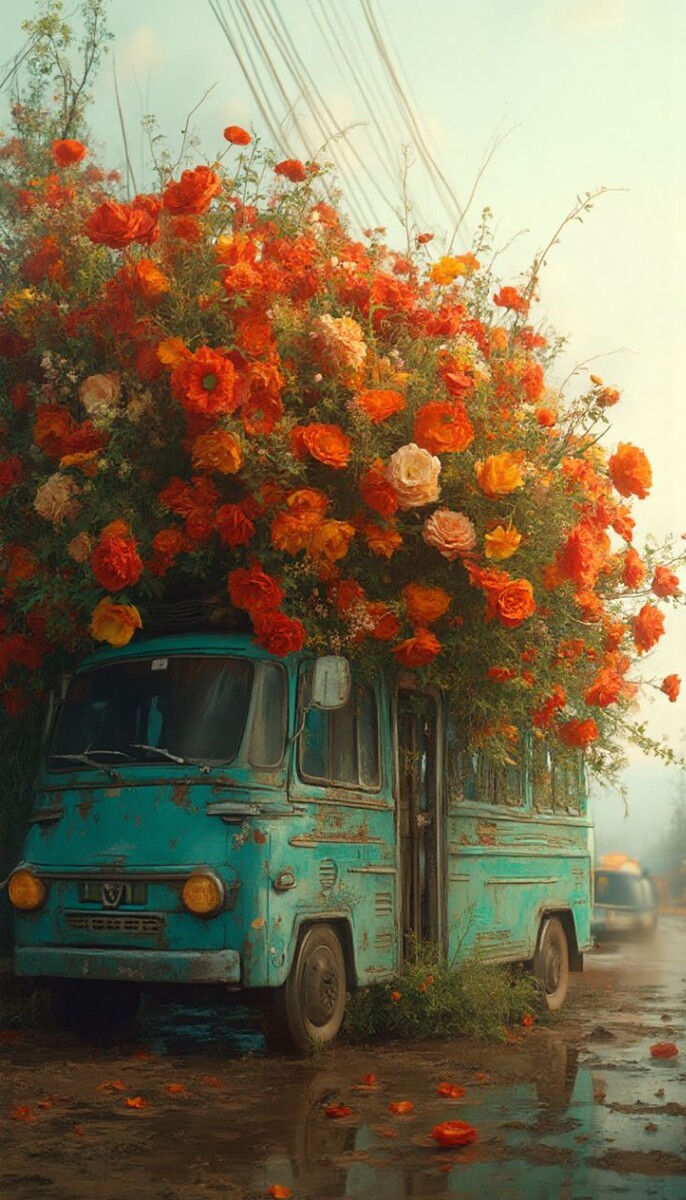 Микроавтобус с цветами Промпт: Цифровая фотография высокого разрешения, высокая детализация, Гигантский букет цветов в гиперреалистичных деталях, палитра ярких красных, оранжевых, желтых и зеленых тонов, цветы растут прямо из кузова микроавтобуса, вид сбоку. Лепестки развеваются на ветру, придавая произведению ощущение движения и жизни. ✅ГДЕ И КАК СДЕЛАТЬ ЗАХОДИМ В ОДИН ИЗ ЭТИХ БОТОВ, Выбираем Работа с изображениями И ВВОДИМ ПРОМПТ 1️⃣VEO 3 BOT 2️⃣SYNTX WEB (сайт с 90+ ИИ в одном месте) 3️⃣SYNTX BOT (бот с 90+ ИИ) 4️⃣VEOSEEBOT Больше промптов и гайдов по работе с нейросетями в моём канале «ПРОМПТОБАР» – присоединяйтесь! Будем творить красоту вместе! #промпт #8марта