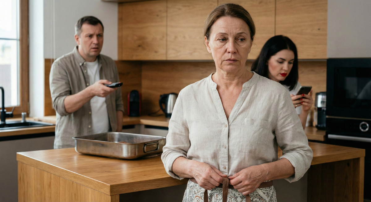 Ольга, стоя у раковины, молча смывала жир с тяжелой утятницы. Ей было пятьдесят два года. Она работала старшим экономистом, но каждые семейные выходные превращалась в шеф-повара, официанта и посудомойку в одном лице.