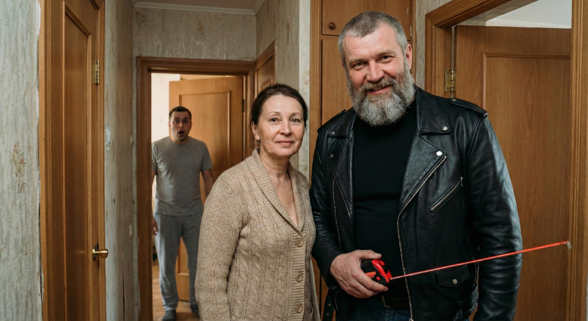 Рядом с ней, заполняя собой, казалось, весь коридор, стоял Григорий. На нем была черная кожаная куртка, тяжелые ботинки, а в руках он держал профессиональную строительную лазерную рулетку.