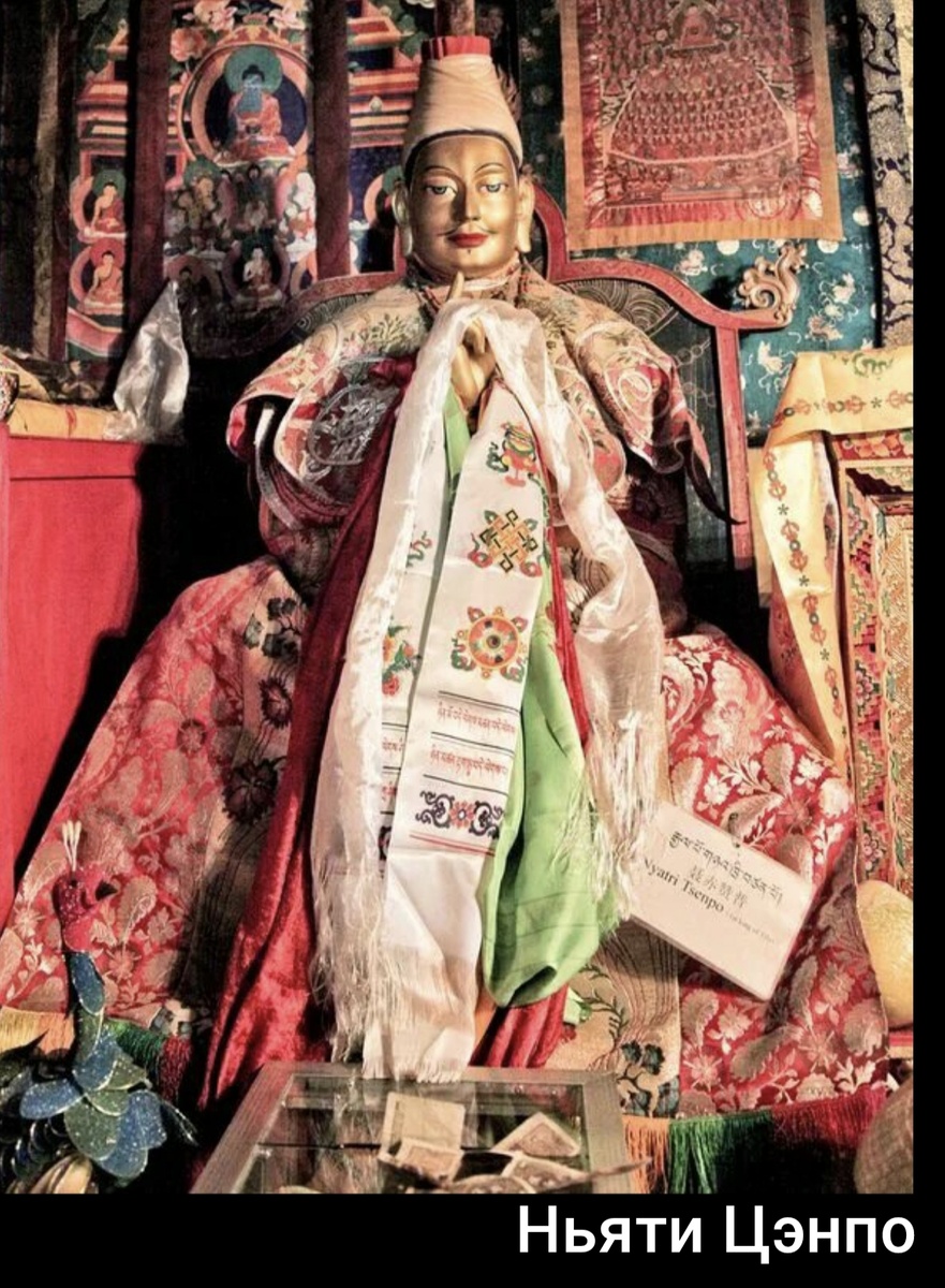 Правящая династия называлась Ярнунгской (по названию долины Ярлунг, откуда она происходила). Согласно легенде, на царя Лхатотори Ньянцена с неба упал сундучок. Сундучок отнесли во дворец и страна стала процветать: большие урожаи, все набеги удачные, скот плодится, нет эпидемий. Так сменилось 7 царей, пока Сонгцен Гампо (VII век) не открыл сундучок. В тем лежали бумаги с текстами. Найдя знатока из Индии царь узнал, что это буддийские тексты и решил тоже принять буддизм. Жениться он хотел также, непременно на буддистке и взял замуж двух царевен - китайскую принцессу Вэньчэн и непальскую принцессу Бхрикути, которые принесли с собой буддийские тексты, традиции и статую Будды.