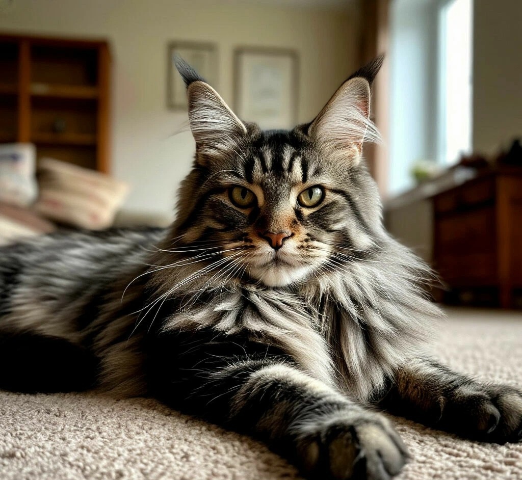 Эти величественные создания, родом из Северной Америки, поражают своими размерами. Взрослый самец мейн-куна может весить от 6 до 10 кг, а некоторые особи достигают и 12-15 кг! При этом они обладают длинным, мускулистым телом, пушистым хвостом и характерными кисточками на ушах, что придает им сходство с рысью.