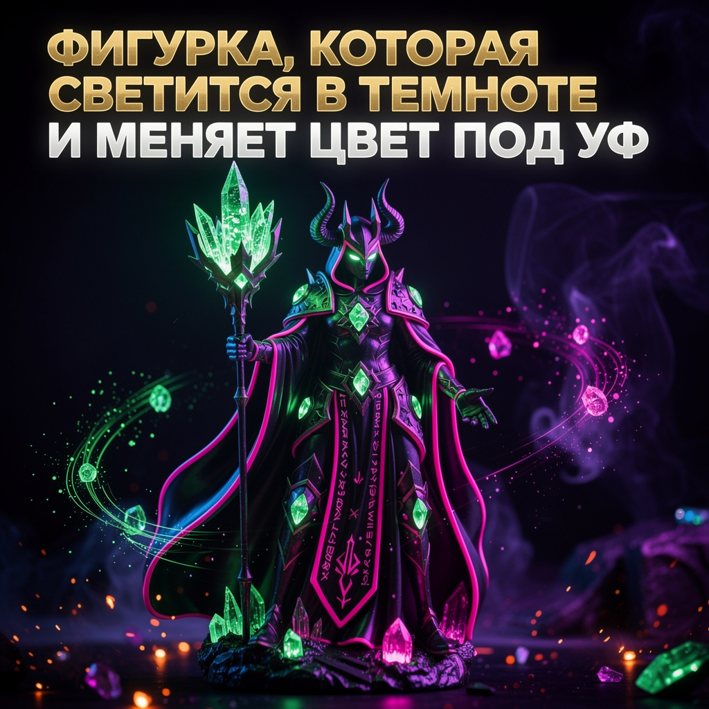 Привет! Это команда SmolArt. В 2026 году glow-in-dark и UV-reactive смолы уже не экзотика, а стандарт для крутых коллекционных фигурок. Я недавно сделал фигурку мага 150 мм, которая: Вот полный пошаговый процесс — от модели до готовой фигурки. Всё проверено на практике, с цифрами и где что брать. Шаг 1. Модель (15–30 минут)