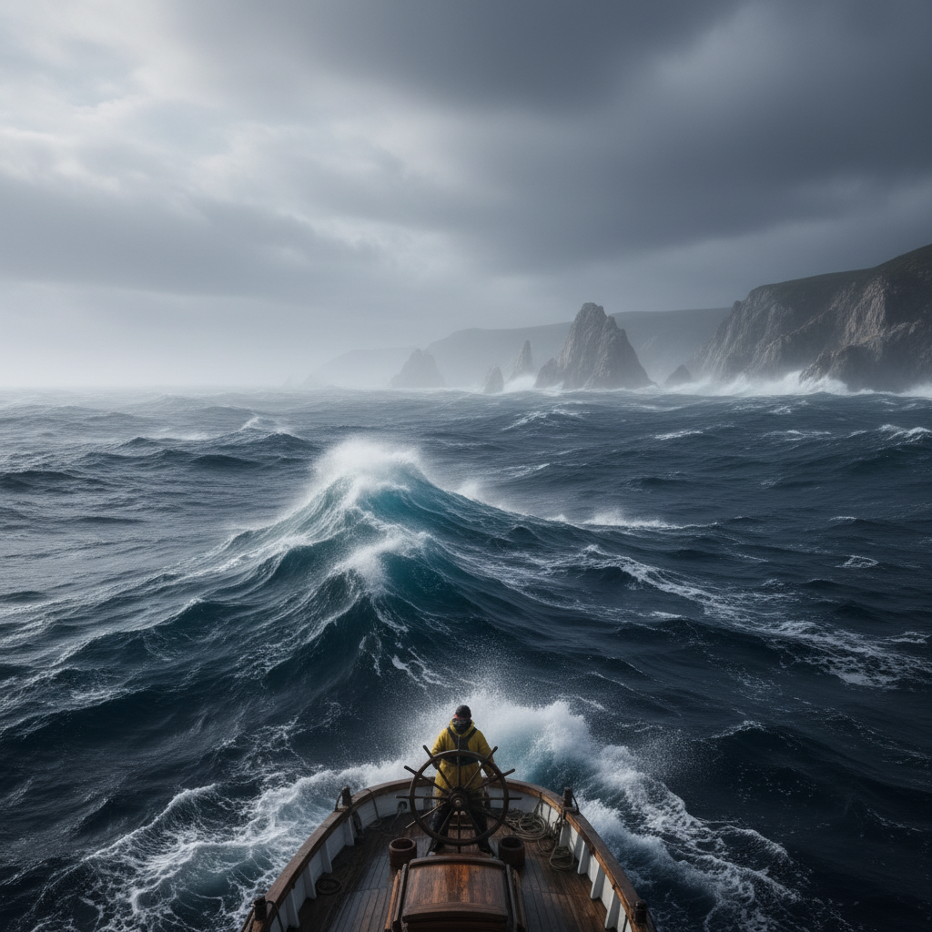 Туман над берегом. Бескрайний тёмно-синий океан раскинул свои бушующие волны перед глазами. Над ним низко висит свинцовое небо, что давит на голову - вот-вот начнётся дождь. Свежо. Так свежо, что в носу чувствуются холодные иголки, но это только бодрит. Отрезвляет даже. Ветер закручивает в воздухе пряди волос, торчащие из-под шапки. Когда-то эту шапку связали любящие руки, что так давно уже не прикасались к лицу - сейчас они, наверное, греют душу и тело другого человека. Мысли стремятся отправиться в путешествие по воспоминаниям о солнечных днях, но пора в путь. ... Куда и зачем плыть - пока не знаю. Но чувствую, плыть нужно. Корабль, верный товарищ, рассекает своим носом волны, что с отдалением от берега становятся только больше и злее. Они кипящей пеной обрушиваются на белые борта, стараясь сбить странника с пути. Но он не сворачивает, цепляясь за призрачные остатки света впереди. Конечно, всё могло быть по-другому. Этот океан мог быть не чернильной пучиной, проглатывающей разбитых м