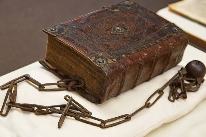 Книги в средние века были настолько ценны, что иногда привязывались цепями к полкам. Это было распространено в европейских библиотеках, так как книги писались вручную и стоили очень дорого. Практика «приковывания» книг цепями просуществовала до конца 1880-х годов, пока книги не стали издаваться массово, и их себестоимость не снизилась. Терра инкогнита | Неизвестная земля