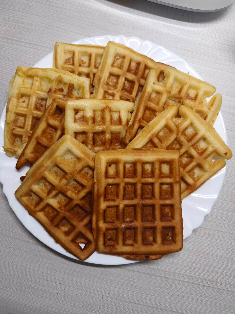 Из данного количества получилось 10 вафель. Одну дочь съела сразу)