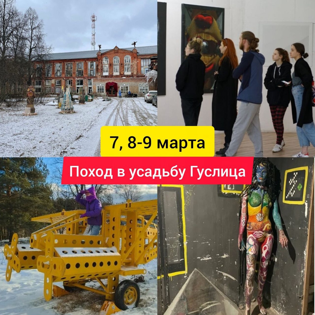 7 марта однодневный / 8-9 марта двухдневный с ночёвкой. В нашем стремительном мире, полном суеты и постоянного движения, иногда так важно остановиться, вдохнуть свежий воздух и насладиться красотой природы. Одним из лучших способов сделать это является эко-поход. Приглашаем вас в пеший поход с посещением уникальной — творческой усадьбы «Гуслица». Крупнейшая арт-резиденция, расположенная в здании старинной мануфактуры XIX века. Эта территория охватывает 14 000 квадратных метров и включает в себя множество творческих пространств. Помещения для проведения мероприятий и практик, русская баня, столовая, чайная, и гостевой дом, вмещающий до 120 человек. Усадьба «Гуслица» предлагает уникальную атмосферу для творческого самовыражения и познавательного отдыха, вдали от городской суеты. В непосредственной близости располагаются чистые хвойные леса с пешеходными тропами, река, озеро, родники, а также исторические достопримечательности села Ильинский Погост, что делает это место особенно привле