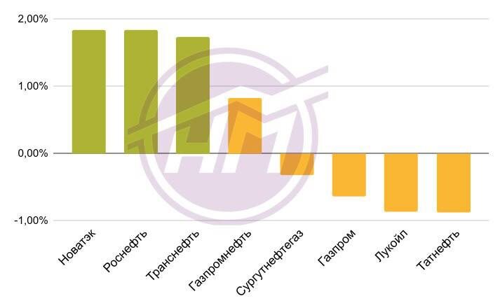 : 🔋 Новатэк 🔼 1,84% от 1146,00 до 1194,90 рублей ⛽️ Роснефть 🔼 1,84% от 391,55 до 390,30 рублей ⛽️ Транснефть 🔼 1,73% от 1390,60 до 1427,20 рублей ⛽️ Газпромнефть 🔼 0,82% от 491,20 до 491,80 рублей ⛽️ Сургутнефтегаз 🔽 -0,32% от 21,62 до 21,95 рублей ⛽️ Газпром 🔽 -0,64% от 124,14 до 127,50 рублей ⛽️ Лукойл 🔽 -0,86% от 5167,50 до 5260,50 рублей ⛽️ Татнефть 🔽 -0,88% от 549,00 до 546,90 рублей Эталонный сорт Brent на мировом рынке оценивался в понедельник 16 февраля на уровне 67,89$/bbl, в пятницу 20 февраля 71,61/bbl Курс рубля к доллару находился в диапазоне от 77,2 до 76,64 За неделю индекс РТС вырос на 0,26%, а индекс МосБиржи упал на -0,39% 📊 ПАО НК «РуссНефть» опубликованы результаты финансовой деятельности по стандартам РСБУ за 2025 год Результаты смотрите в наших материалах 📊 11 февраля 2026 года ПАО «НОВАТЭК» опубликовало раскрываемую консолидированную финансовую отчетность за год, закончившийся 31 декабря 2025 года Результаты смотрите в на