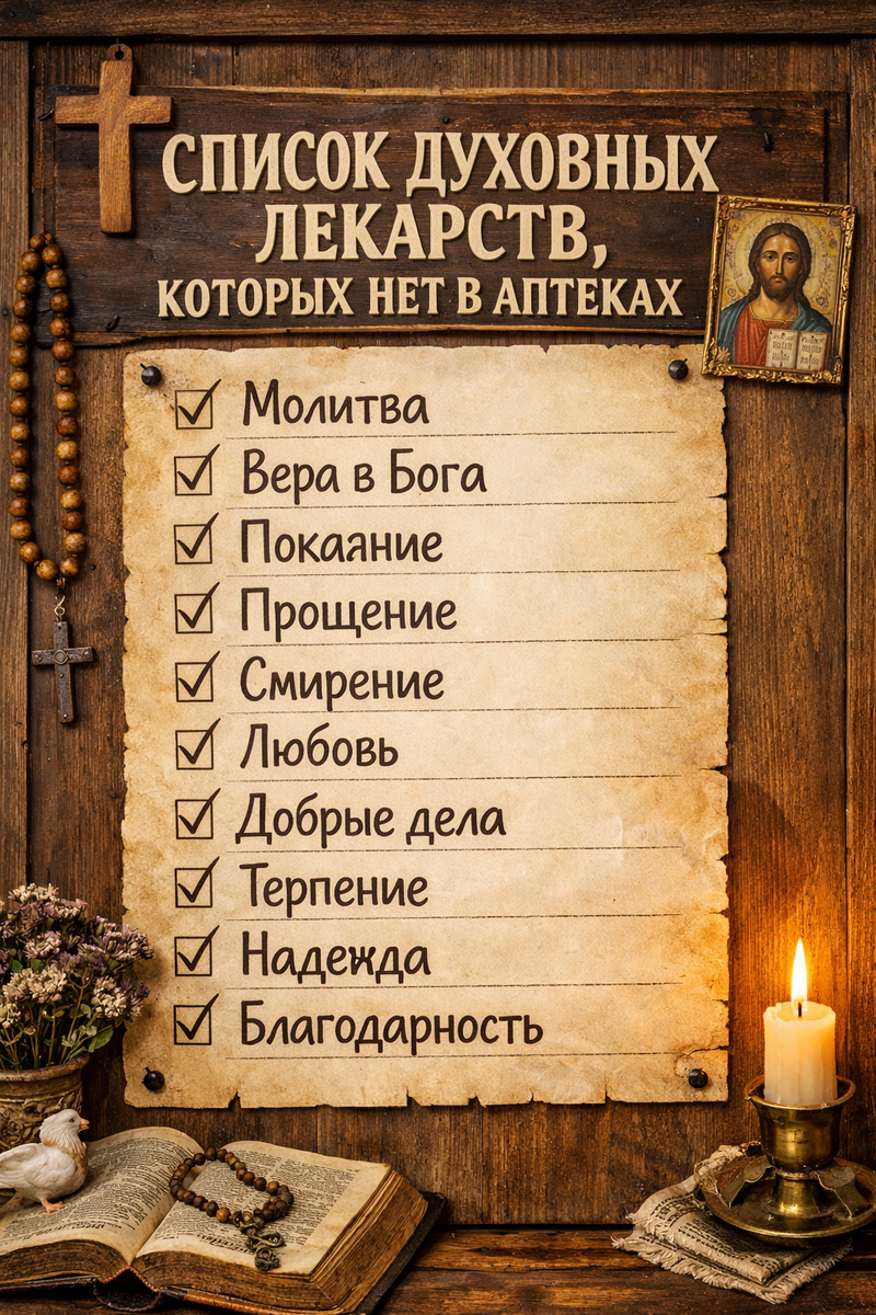 Иногда все выглядит благополучно. Давление в норме. Анализы хорошие. Таблетки куплены заранее. Но внутри - тревога. Раздражение. Тяжесть. Человек вроде бы живет как все, а радости нет. И тогда возникает странный вопрос: а чем лечить это? Мы привыкли, что лекарство - это то, что продается в аптеке. Но есть вещи, без которых человек рассыпается, даже если физически здоров. Сегодня хочется поговорить о той аптечке, которую не выписывает врач. Когда сердце беспокойно, трудно уснуть, мысли крутятся по кругу - иногда достаточно остановиться. Не листать телефон. Не искать новую информацию. А просто встать перед Богом. Молитва не убирает проблемы мгновенно. Но она возвращает опору. Христос говорит: «Без Меня не можете делать ничего». Эти слова сначала пугают. А потом утешают. Значит, можно не тащить все одному. Многие священники советуют начинать день с молитвы оптинских старцев (перед началом дня). В ней есть просьба о мире, терпении, умении не осуждать. Это словно настройка души перед встреч
