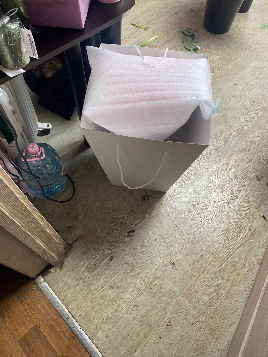 Заспанная флористка уже ждала меня с готовым грузом. Я её переспросила на счёт режима работы и она подтвердила, что магазин с 8.