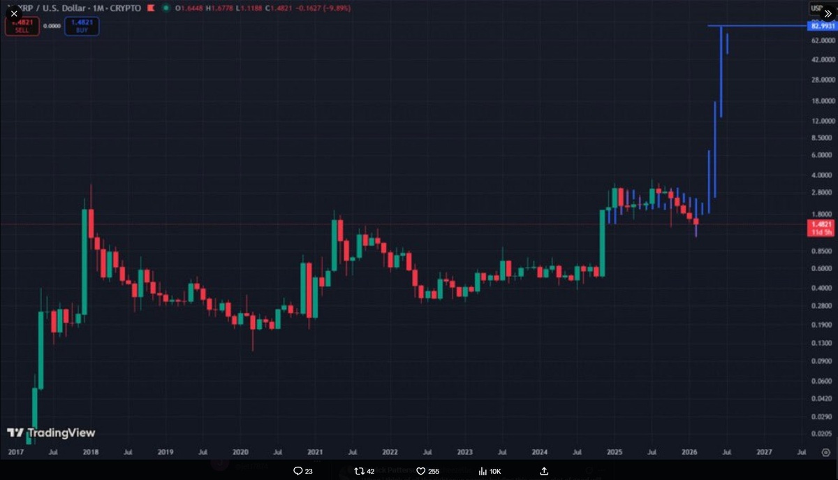 ? 📉 XRP переживает сложный период, завершая пятый месяц подряд снижением. Текущая цена составляет около $1.43, что более чем на 60% ниже недавнего пика. Несмотря на это, некоторые аналитики видят признаки возможного разворота и предсказывают значительный рост. 📊 Ключевые моменты: - Аналитик Archie прогнозирует рост XRP до $83 к концу 2026 года, что эквивалентно увеличению на 5,900%. В этом случае рыночная капитализация достигнет $5 триллионов. - Сравнивается текущая ситуация с "плоским" периодом 2016 года, после которого в 2017 году последовал резкий подъем. Считается, что длительные периоды низких цен "вымывают" слабых продавцов. - Сеть XRP Ledger показала токенизированные реальные активы на $1.3 миллиарда за этот год, доведя общий объем до $2.3 миллиарда.