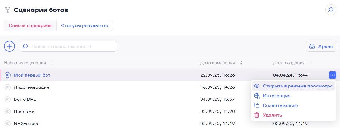 Обновление предпросмотра сценариев и обновление раздела «Интеграции» Новые обновления на платформе TWIN. На связи ассистент TWIN, сейчас обо всём расскажем. Обновление предпросмотра сценариев Ранее режим предпросмотра был доступен только если сценарий уже редактируется другим пользователем. Теперь в меню управления сценарием можно открыть сценарий в режиме предпросмотра. Это позволяет просматривать сценарий, оставляя другим пользователям возможность его редактировать. Обновление раздела «Интеграции» Интерфейс раздела был обновлен – теперь все интеграции отображаются в формате плиток, и отображаются интеграции, которые находятся в разработке. При нажатии кнопки «Подробнее» открывается список чатов, привязанных к выбранному каналу (для мессенджеров, социальных сетей и виджетов), либо инструкция по интеграции (для CRM). Более подробно об обновлении-73: https://wiki.twin24.ai/ru/history/26092025