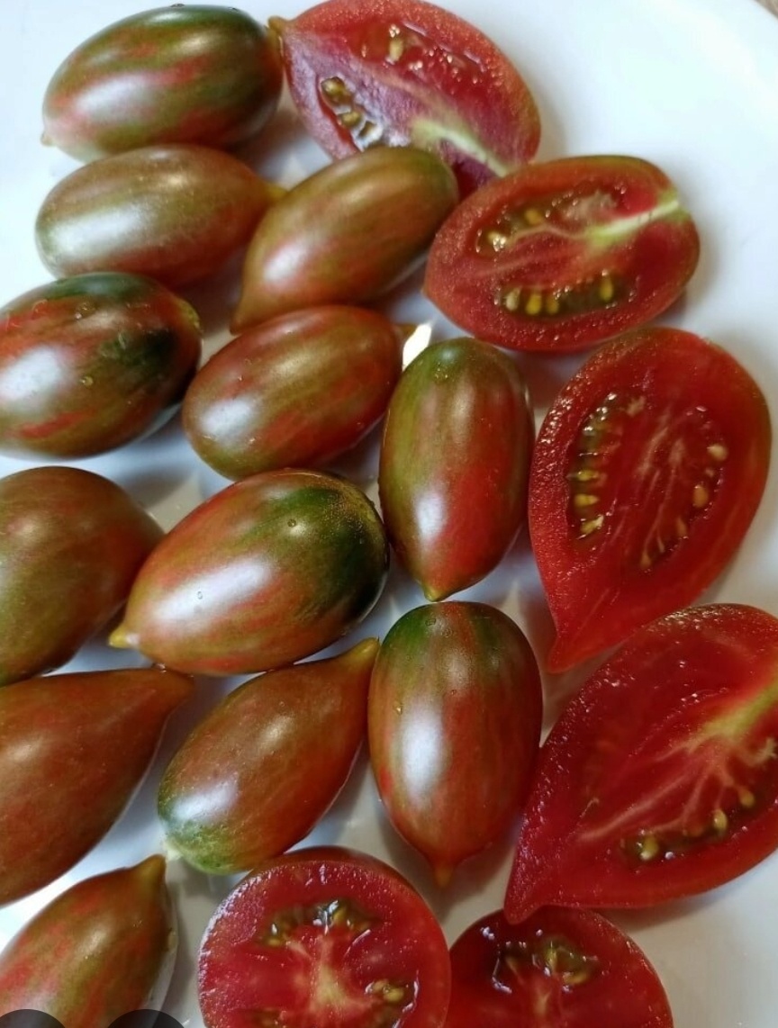 Ребята, сколько же там всякого разного! Три дня я рассматривала всё это помидорное богатство. Каких только нет форм плодов: и округлые, и плоско-округлые, и "сливки", и сердцевидные, и каплевидные и вообще трудно определяемой формы. А уж про цвет и говорить нечего! Двухцветные и даже трехцветные! Полосатые, с плавным переходом цвета, с румянцем на плечах, с "напылением" и тому подобное. И вкусы у всех разные, и назначение. Могут быть салатными, для вяления и консервирования.