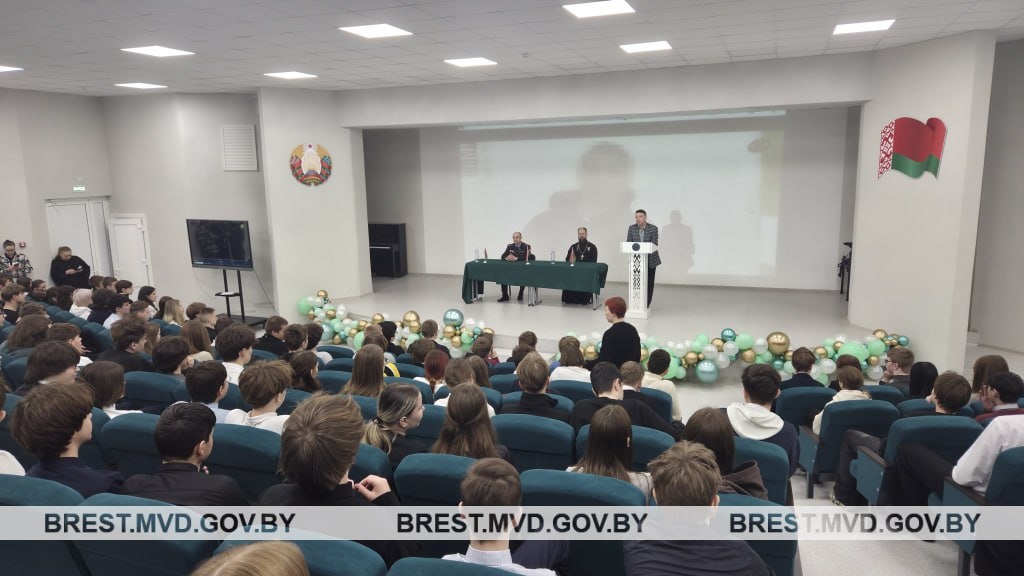 #Милиция_Брестчины #Милиция_детям 🫡На базе средней школы № 33 г. Бреста в рамках военно-патриотического воспитания молодежи состоялась диалоговая площадка на тему «Место подвига в мирное время». 💬Это событие собрало учащихся, педагогов и приглашённых гостей, среди которых были заместитель начальника Ленинского РОВД г. Бреста по идеологической работе и кадровому обеспечению Евгений Бут и председатель отдела Брестской епархии по взаимодействию с Вооруженными силами и всеми воинскими формированиями протоиерей Виталий Хоновец. 🗣В своём выступлении Евгений Бут осветил ряд вопросов, актуальных для нашего общества. Он подчеркнул важность исторической памяти и гражданственности, отметив, что патриотизм — это не только любовь к Родине, но и глубокое уважение к её истории, культуре и традициям. Спикер поделился личными историями, которые сыграли значительную роль в его профессиональном самоопределении. Его выбор служить Родине стал результатом осознанного подхода к вопросам долга и ответст