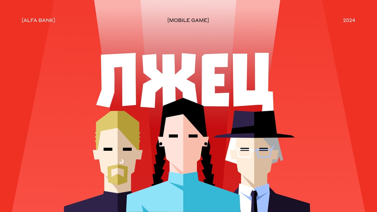 Недавно помогли новым клиентам Альфа-Банка более качественно онбордиться в сервисы и продукты банка. Для этого запустили игру с поиском лжеца: 58 уровней игры с разными вопросами, историями и героями. Изначальный запрос был создать игру, которая была нацелена на новых пользователей банка. У банка есть серия онбординговых видеороликов, в которых рассказывают про интерфейс, преимущества и другие условия банка. При этом важно было понять, а посмотрел ли клиент этот ролик на самом деле, потому что его можно просто включить и метрика засчитает, что ролик проигран. Мы предложили игровую механику, где есть четыре персонажа, рассказывающие истории. Задача игрока — определить, кто из этих персонажей врет. В игре есть фановые истории, а есть продуктовые, которые завязаны на информации из видео. Не досмотрев ролики, сложно определить, кто лжёт. Формат идеи взят из ток-шоу. Мы старались сделать истории интересными в отрыве друг от друга, чтобы пользователь мог не выпадать из контекста на протяж