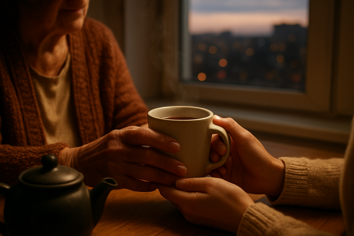 Рассказ Мы сидели на кухне вдвоём. За окном шумел вечерний город, где-то сигналили машины, лаяли собаки, а у нас было тихо. Мама налила чай в мою любимую кружку — ту самую, с отбитой ручкой, которую я всё никак не разрешал выбросить. Я смотрел на её руки — морщинистые, в мелких пигментных пятнах, но всё такие же тёплые. Эти руки когда-то вели меня в первый класс, перевязывали мои разбитые коленки, гладили по голове перед сном. — Как ты там? — спросила она тихо. — Нормально, мам. Всё хорошо. Она кивнула и улыбнулась той особенной улыбкой, которой умеют улыбаться только матери. Улыбкой, которая говорит: "Я знаю, что у тебя не всё хорошо, но если ты не хочешь говорить, я не буду настаивать". Я отхлебнул чай. Горячий, с мятой — она помнила. Всегда помнила, какой чай я люблю, какие пирожки, какое варенье. Даже когда я сам забывал. — Помнишь, — вдруг сказала она, — как ты в детстве боялся темноты? Я усмехнулся. Конечно, помнил. Каждый вечер одно и то же: "Мам, посиди со мной". Она садилась н