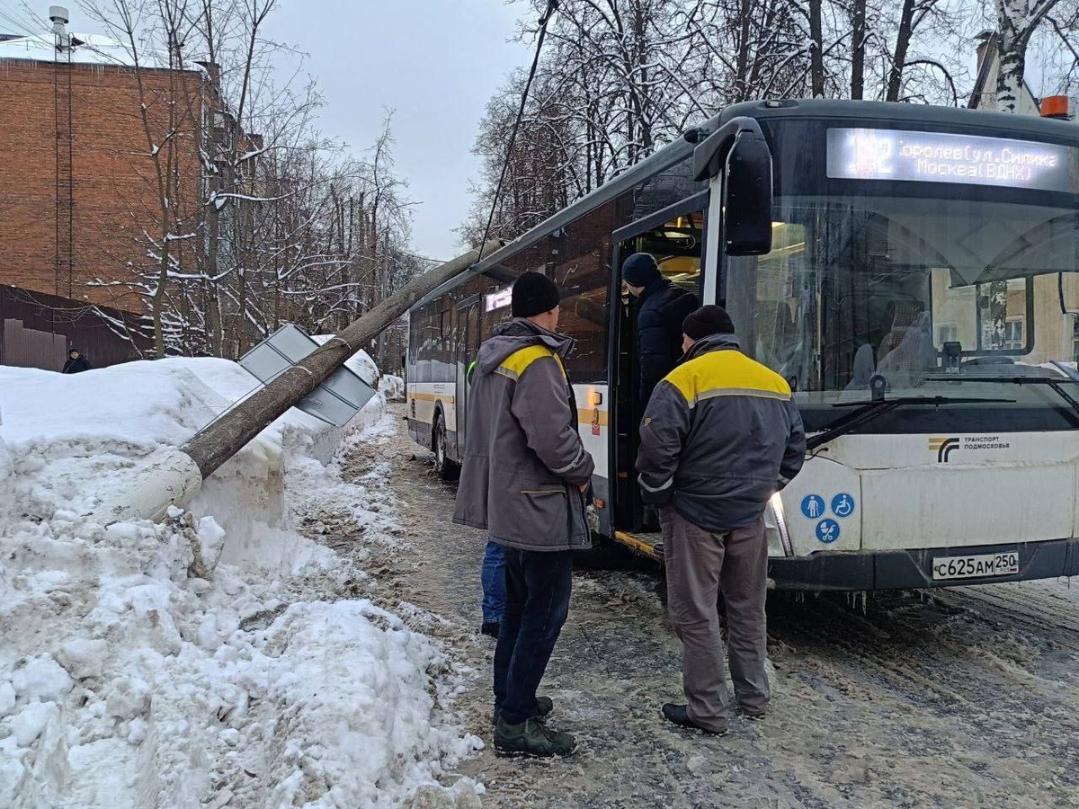 В Королёве столб прилёг на автобус.