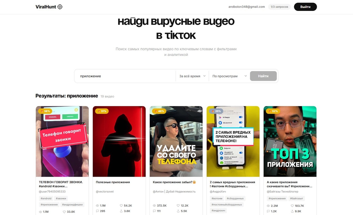 🎵 Чтобы не тратить время на тесты идей из головы, лучше взять ту, которую уже оценили. Так шансы на попадание в рекомендации значительно повышаются: https://app.viralhunt.ru/
