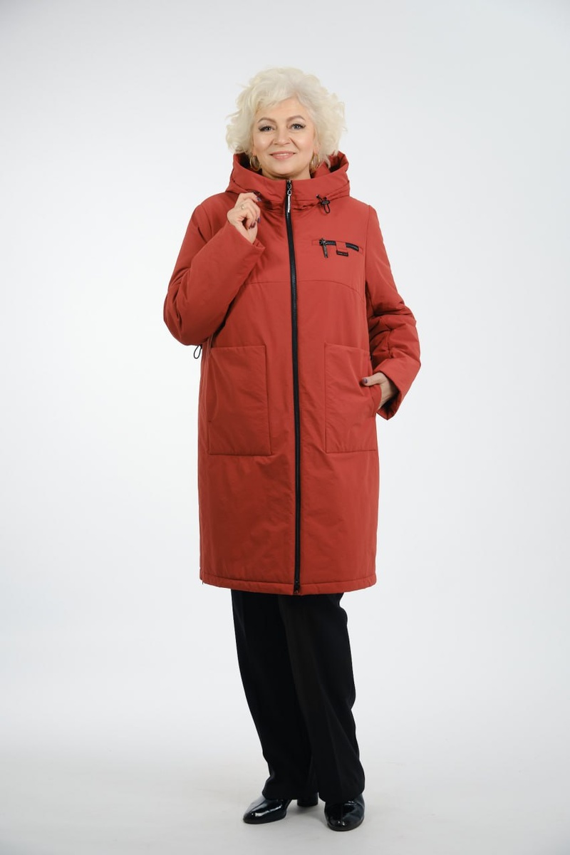 52,54,58. Френч в насыщенном терракотовом оттенке — яркий акцент для тех, кто не боится выделяться. Этот тёплый кирпичный цвет освежает образ и прекрасно смотрится в пасмурные осенние и зимние дни. Модель выполнена в лаконичном прямом силуэте. Чистые линии и минималистичный дизайн создают элегантный образ, который уместен и в повседневной жизни, и на деловых встречах. Удлинённый крой до колена надёжно защищает от холода и ветра. Объёмный капюшон с высоким воротником-стойкой закрывает шею и защищает в непогоду. Капюшон дополнен кулиской для регулировки. Застёжка выполнена на контрастную чёрную молнию по всей длине изделия — смотрится стильно и современно. На груди расположен декоративный карман на молнии. Два больших накладных кармана по бокам вместительные и удобные — руки всегда в тепле. Подкладка выполнена в тон изделию. Френч идеально сочетается с брюками, юбками и платьями. 👌