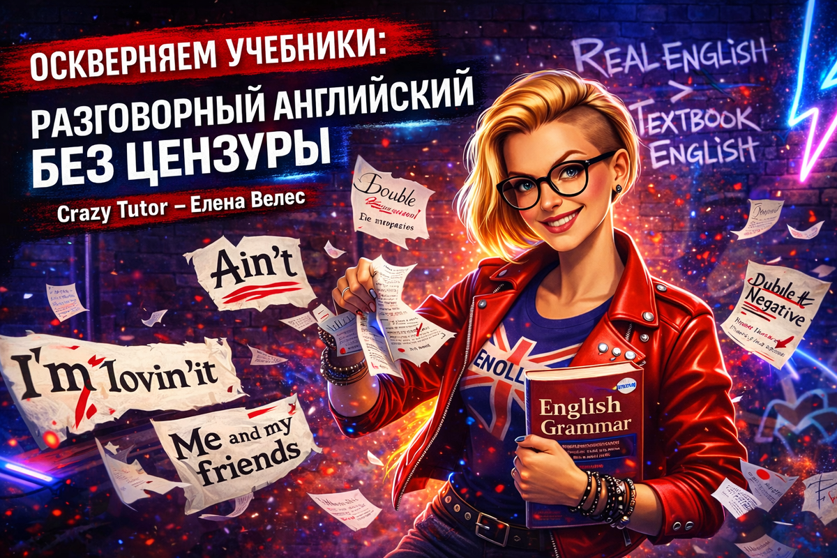 Английская грамматика на «минималках» На связи Елена Велес. Сегодня мы официально «оскверняем» учебники. Если вы всё ещё сидите с умным видом, пытаясь запихнуть живой английский в тесные рамки школьной грамматики — срочно бросайте это гиблое дело. Мы здесь, чтобы говорить так, как говорят люди, а не роботы из пособий. Погнали? Вам когда-нибудь говорили: «Love нельзя в Continuous», «Двойное отрицание — это преступление», «Не ставь me в начало предложения»? Забудьте. Язык — это живой организм. Носители плевать хотели на правила, если им нужно передать эмоцию или сэкономить время. Давайте разберем фразы, за которые любой граммар-наци поставил бы вам двойку, но за которые «свои» назовут вас профи. Знать правила нужно, чтобы понимать базу. Но использовать их как незыблемый закон — путь в никуда. Язык создан для общения, а не для тестов. Разрешите себе ошибаться, разрешите себе звучать неформально, разрешите себе быть дерзкими! Ну что, признавайтесь, какая из этих «неправильных» фраз бесит в