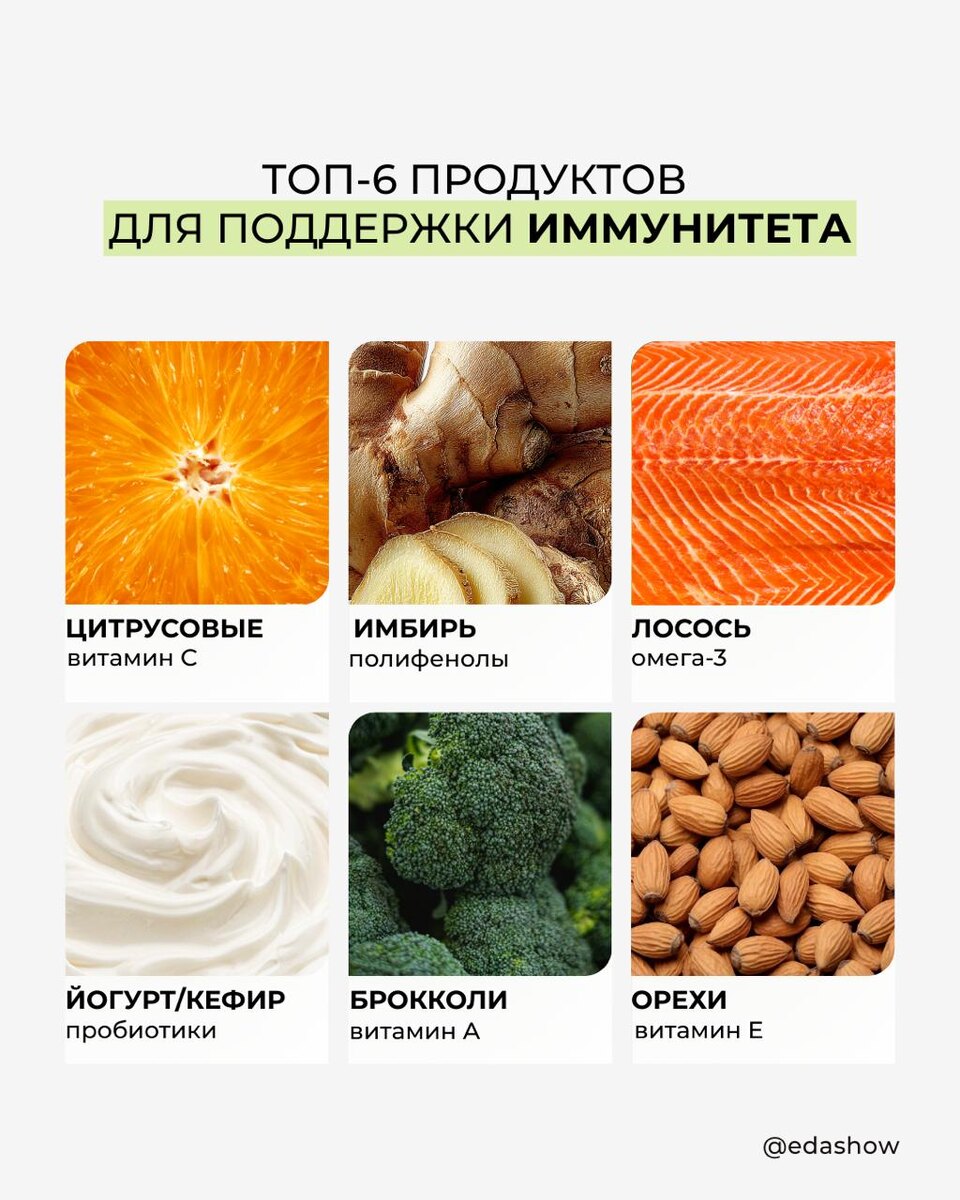 Сильный иммунитет — это не «волшебная таблетка», а результат ежедневных привычек. До 70% иммунных клеток связаны с кишечником, а значит питание напрямую влияет на то, как организм реагирует на вирусы и бактерии. Важно не только количество еды, но и её качество: достаточное поступление витаминов, минералов, антиоксидантов и полезных жиров помогает поддерживать защитные механизмы на оптимальном уровне. Собрали продукты, которые естественным образом поддерживают иммунную систему: Цитрусовые (апельсин, грейпфрут, лимон)